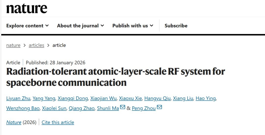 1月29日,国际顶尖学术期刊《自然》同时上线了复旦大学两项重大科研成果,其中集成芯片与系统全国重点实验室、集成电路与微纳电子创新学院的周鹏教授与马顺利副教授团队研制的“青鸟”原子层半导体抗辐射射频通信系统,凭借其“超长寿命”与“超低功耗”两大核心优势,在国际上首次实现了基于二维电子器件与系统的在轨验证,为深空探测、高轨卫星、星际通信等前沿空间任务提供了强有力的技术支撑。